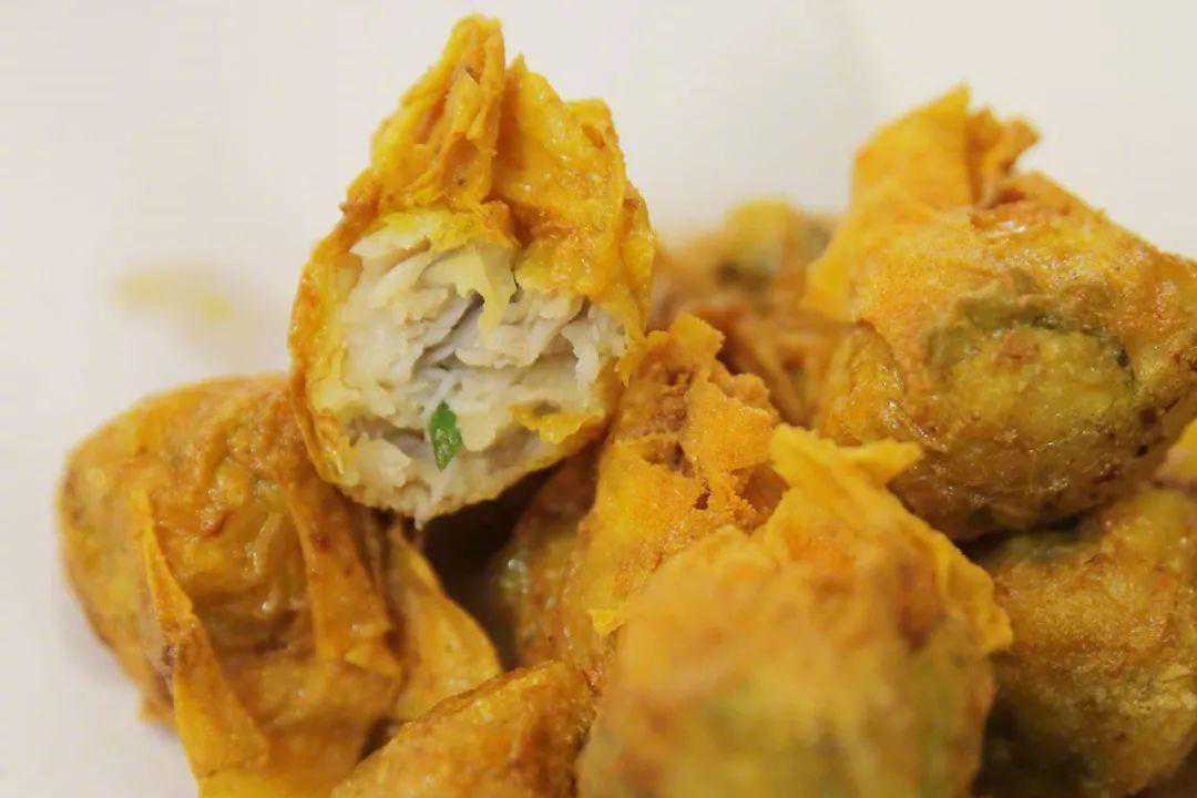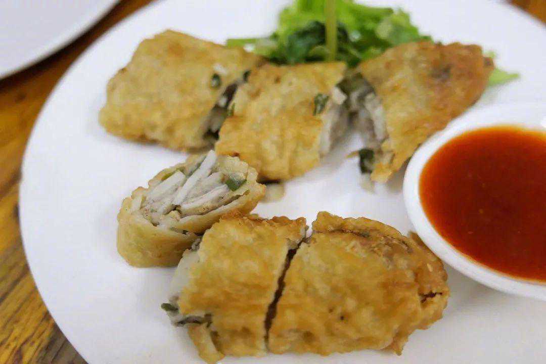 说是鸡卷,其实和鸡没有什么关系,有坊间传闻说是因为样子长得像鸡脖子才得此名。内馅用猪肉、荸荠拌合五香粉、地瓜粉,外皮则新旧不同,传统以猪网油来包,嘴里淌油,香气十足。后来简化成了豆皮,也是香酥得很。