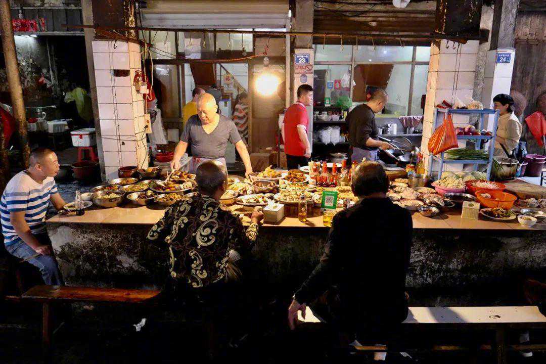 早市的调味较为清淡,通常是一把葱花、少许白胡椒粉,几滴当归、黄芪浸泡的高度酒。到了夜宵时段,饮酒夜归、饥肠辘辘的麻龟(酒鬼)众多,应运而生的流动摊头更偏好重口味。