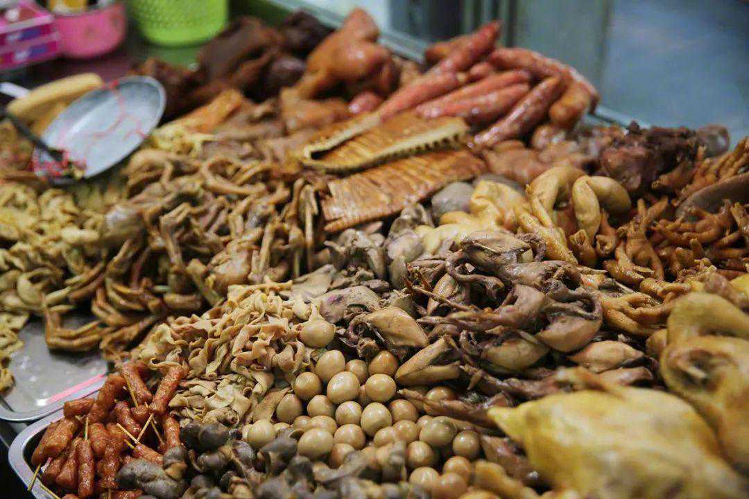 卤料是完美的下酒菜。从前店家挑担子摆摊,游走于戏台庙口之间,就有了卤料担的称呼。现在大多有了固定门头,主食、炒菜、羹汤一应俱全。