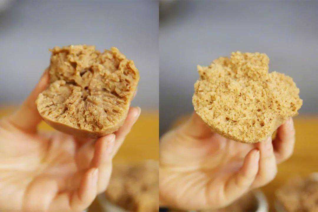 王川花生汤的田螺肉碗糕(左)和正常碗糕(右)