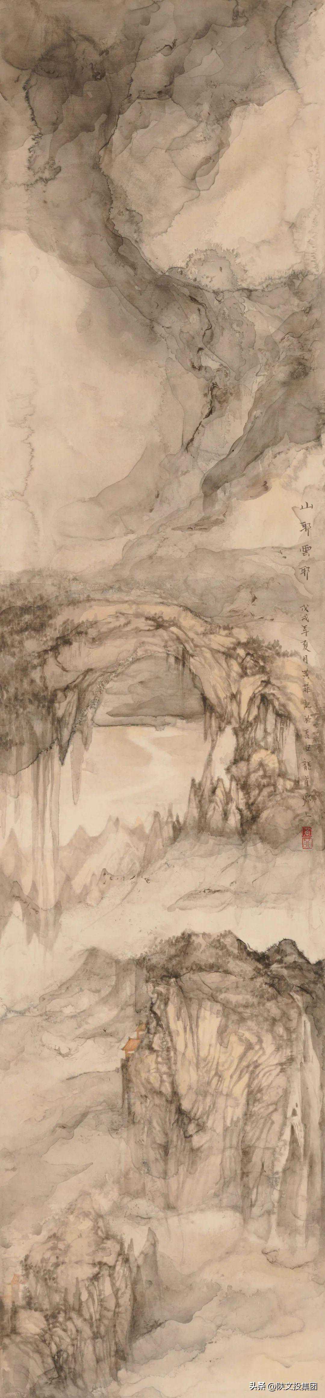 款识:山耶云耶,戊戌年夏月黄菲记於长安龙首塬上。