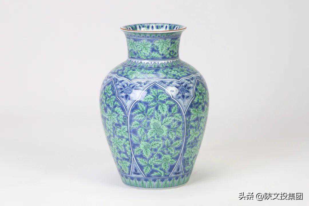 库山窑青花绿釉开光缠枝花瓶