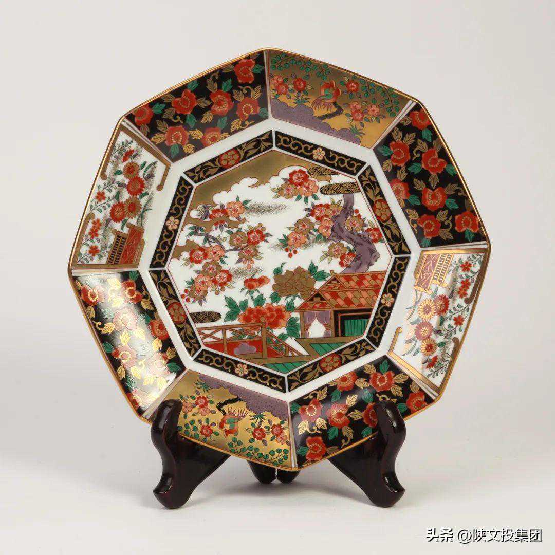 五彩描金八方美景图赏盘