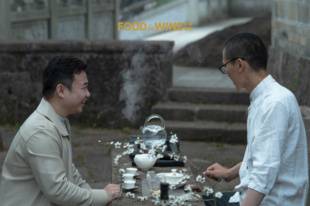 「你看这个茶汤的颜色,还很像轩尼诗干邑的颜色啊!」陈志评举着杯子轻轻闻了闻,细腻的花香、甜蜜的果香、隐约的香料香和丝丝缕缕杉木与檀香木的气息从杯中散发出来;又迎在光下细看,凝结的琥珀色仿佛在诉说融汇近100种「生命之水」的背后是一个半世纪的历史。而这种颜色的巧合其实都有着风土环境的支撑,林文利解释道,「岩茶以在武夷山核心景区的为最佳,轩尼诗干邑产地只在法国干邑地区,都是良好风土的产物,内含物质丰富,自然有相似之处。」