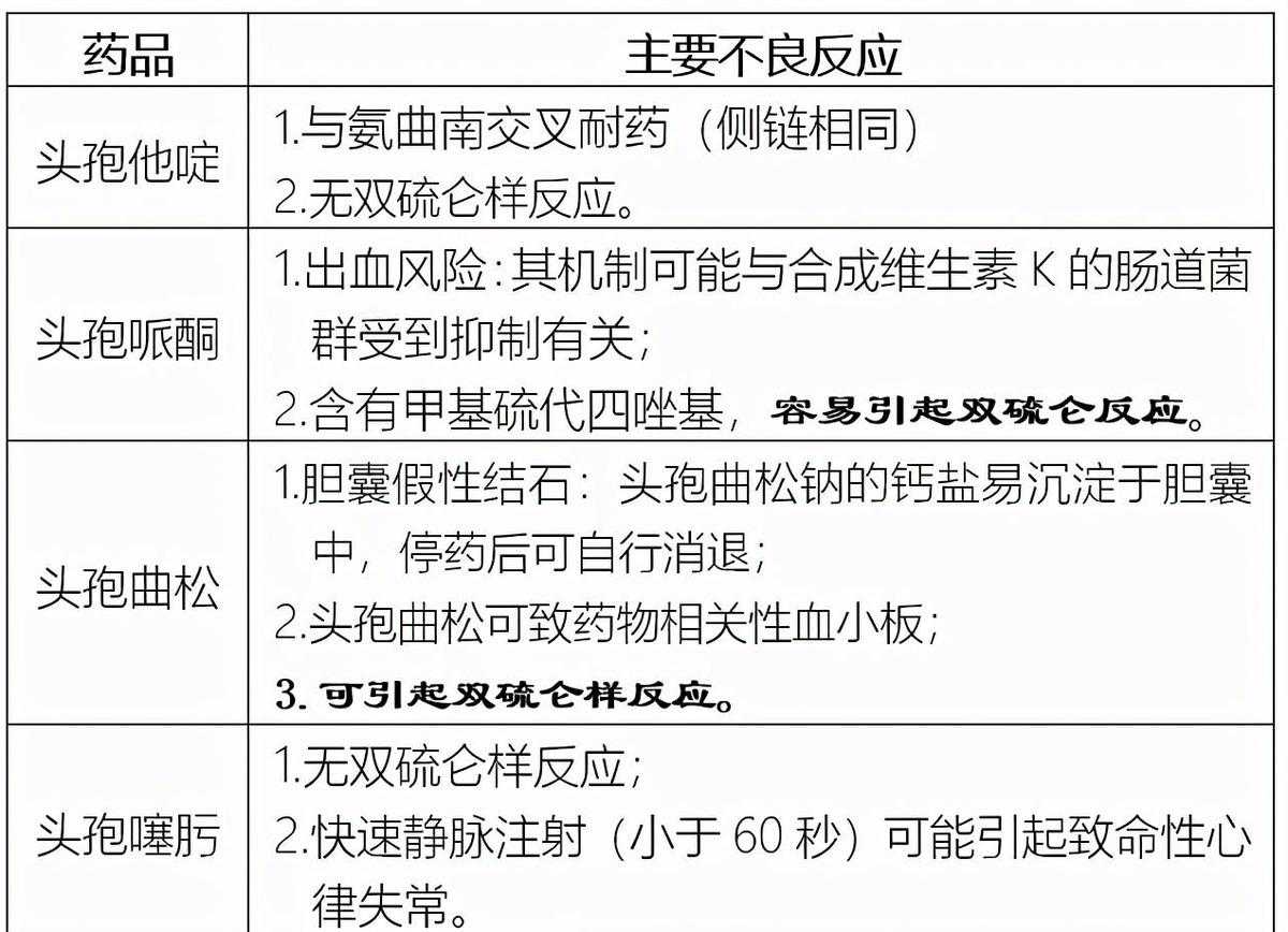 头孢哌酮含有甲基硫代四唑基,容易导致双硫仑反应。头孢曲松因含有甲基硫代三嗪侧链也会发生双硫仑反应。