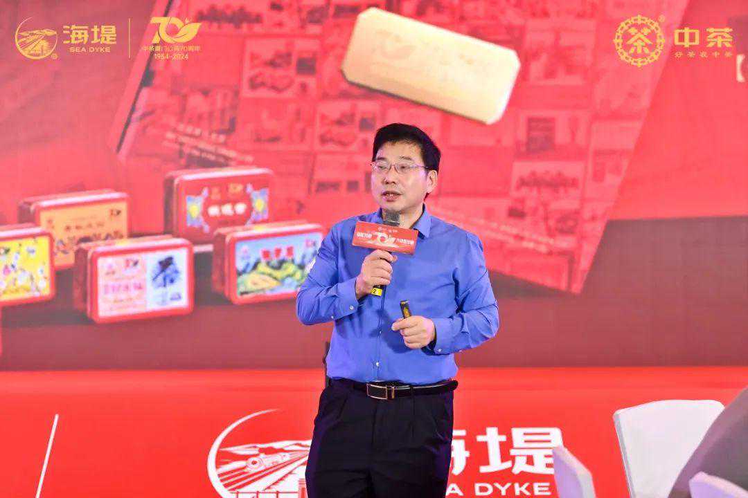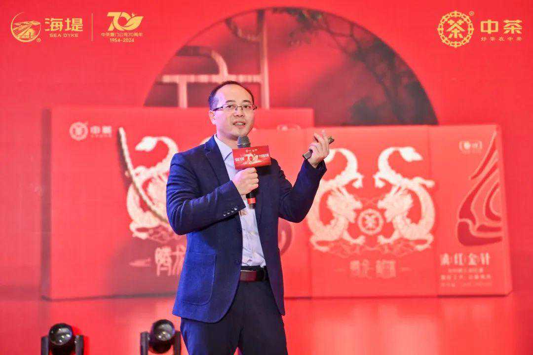 △中粮集团福建区域协同平台主任、中茶厦门公司总经理赵大川解读《中茶海堤品牌营销3.0战略》(中茶厦门公司供图)