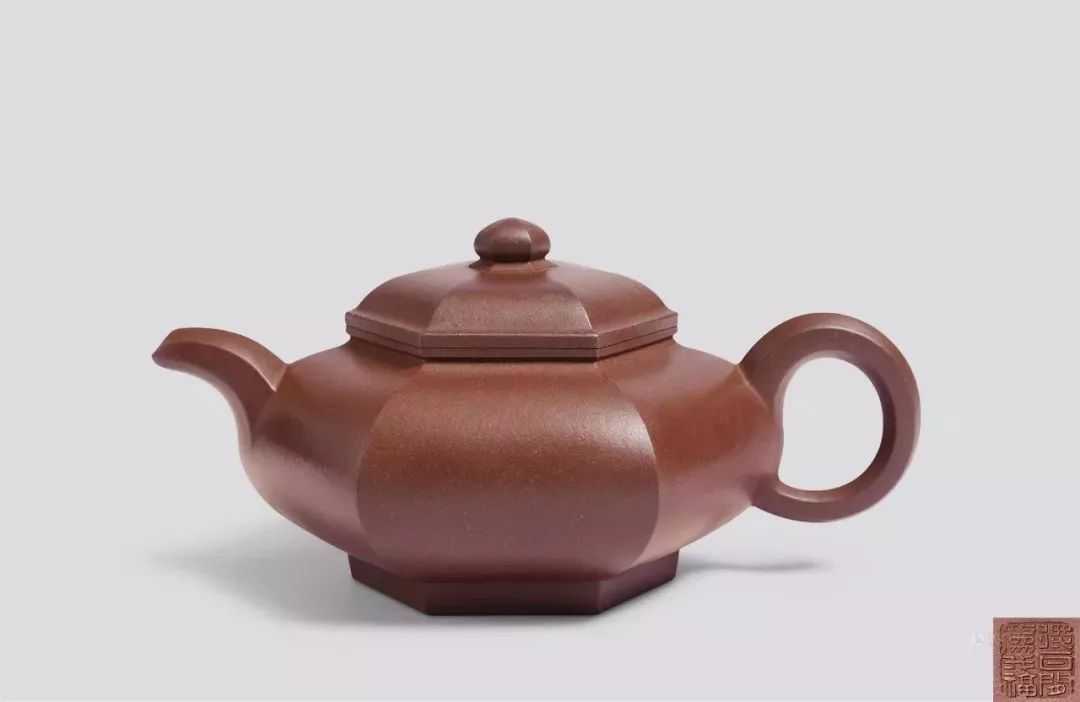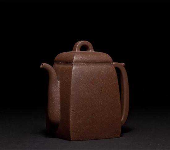 表面光润,没有半点装饰,棱角分明笔直,壶盖穹窿凸起,整壶呈现出蓄势待发之势,显得十分庄重大方。