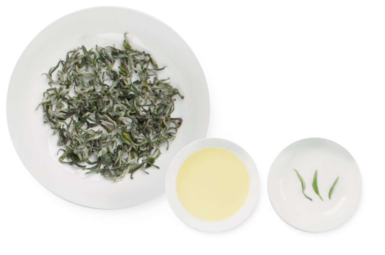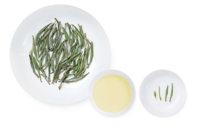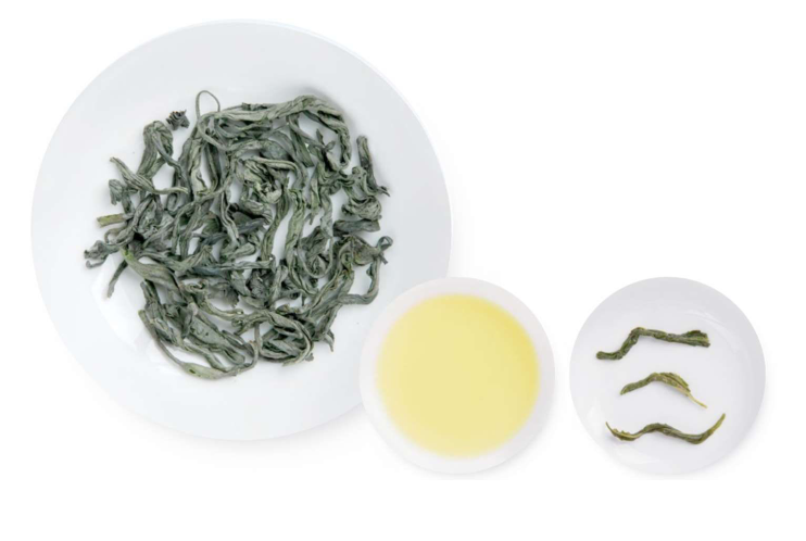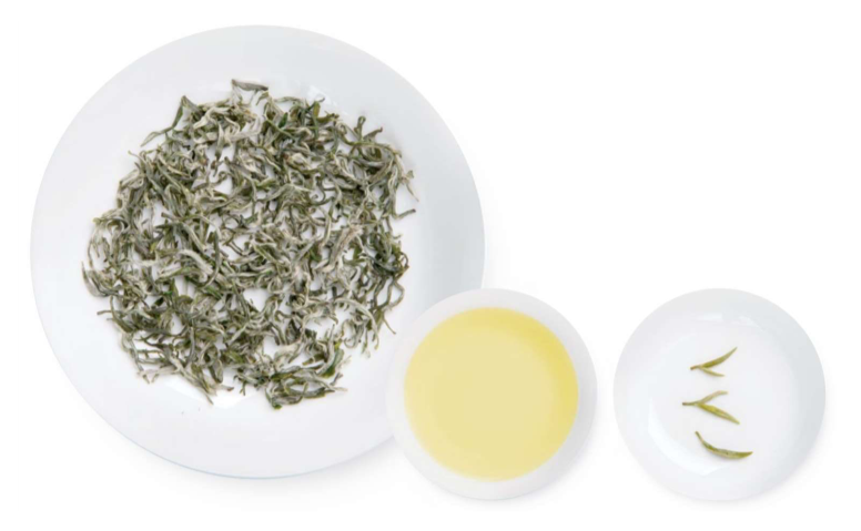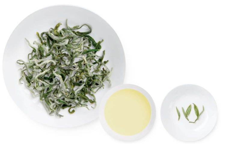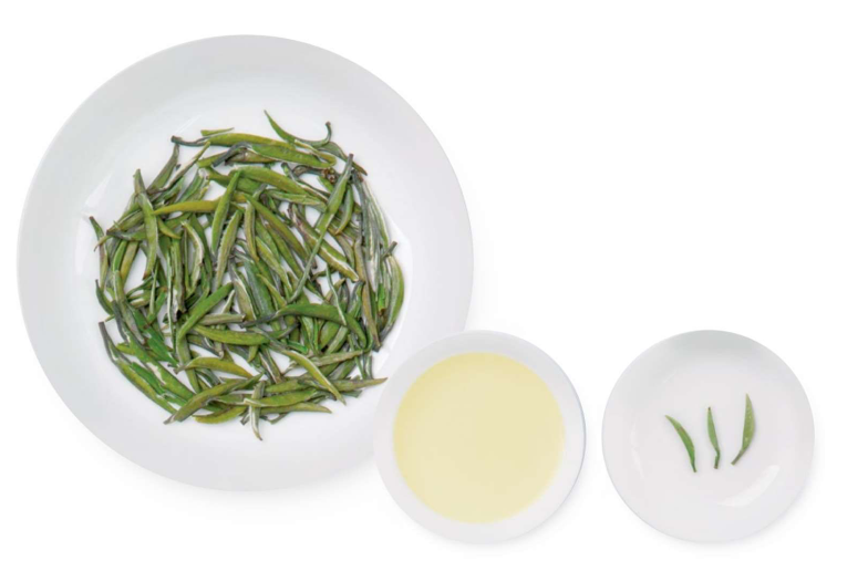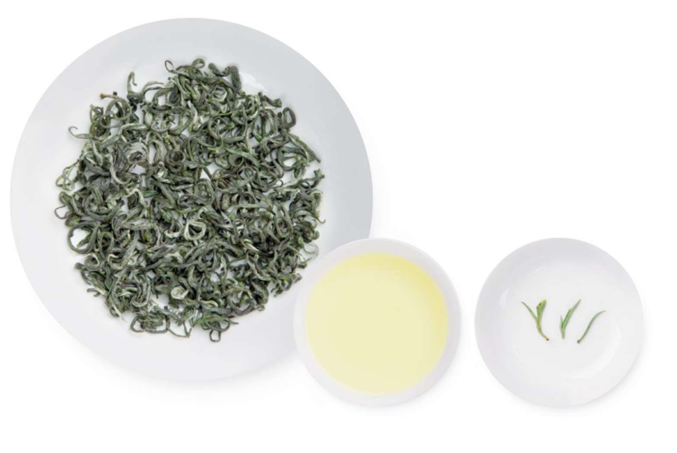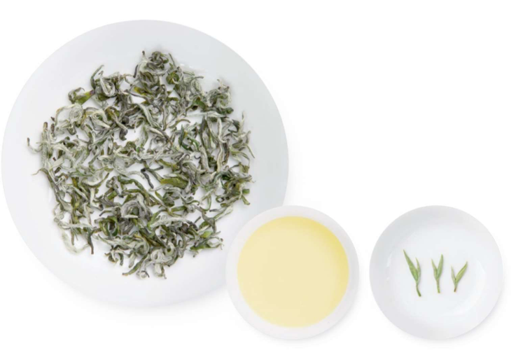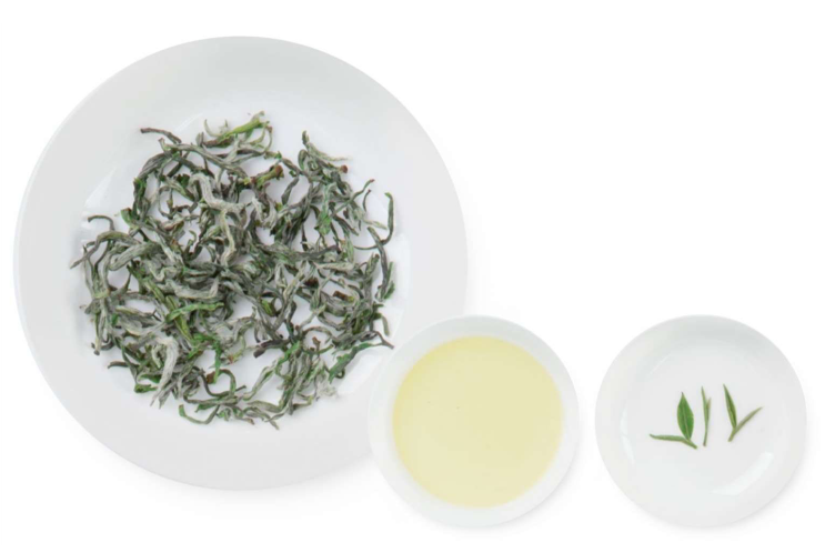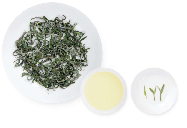识舒城小兰花芽叶相连,条索边缘蜷曲,仿佛缩小型的兰花。颜色翠绿喜人,带有细密狭长的银毫。