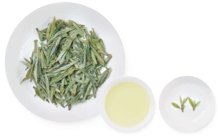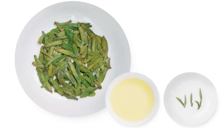 识西湖龙井条索整齐,平整扁匀,色泽类似青芝绿,微泛嫩黄,干茶清香馥郁。