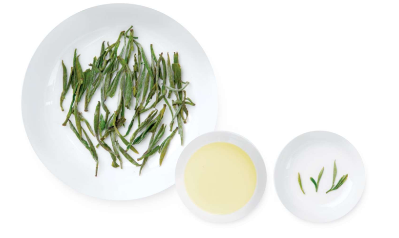 识安吉白茶常见凤形和龙形两种。凤形茶细柔精致如凤羽,一般一芽一叶,大小均匀,干茶浅碧有白毫,娇细喜人。龙形茶扁细挺直,形似兰花,俊秀肥壮。