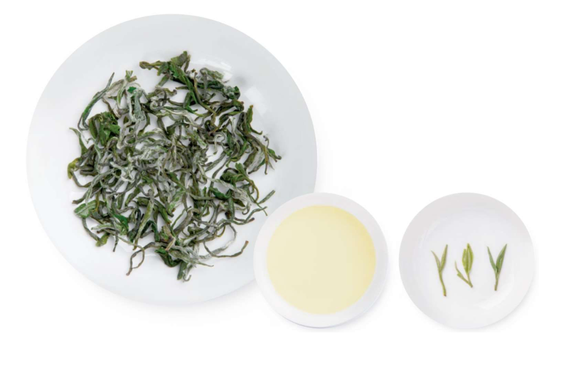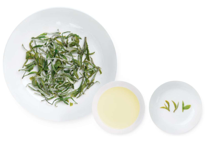 品冲泡后,香冷如竹叶挂雪,清气霖霖,叶片颜色渐泡渐浅,最后成为莹白带绿。茶汤倾出,清澈而有细毫起舞,莹然清透。