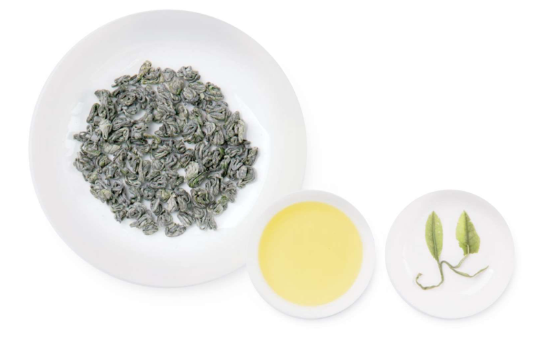 识洞庭碧螺春外形条索纤细,蜷曲成螺,色泽银绿隐翠,俗称为“满身毛、铜丝条”。极品碧螺春每500克有六七万个的芽头,非常珍贵。
