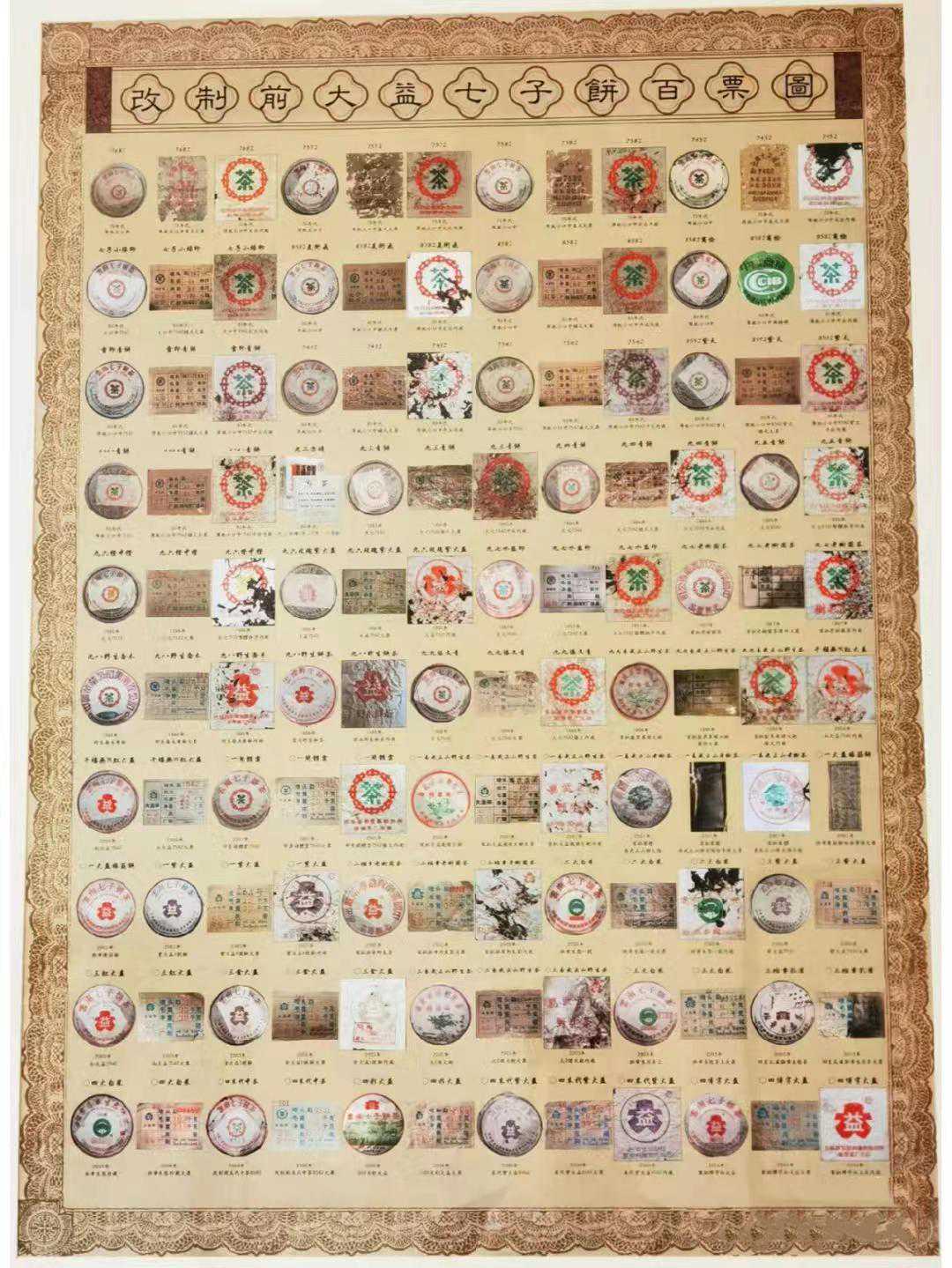 七子饼:以1972年中国土产畜产进出口公司云南茶叶分公司成立为标志。这一年云南省获得了茶叶出口权,所有出口茶品都有唛号,包装纸上都印有“云南七子饼茶”字样,因而被称为“七子饼茶时代”。这个时代的终结,实际上并没有明晰的时间概念。它是一个渐进的过程,直到“统购统销”政策全面取消的1993年,“唛号+云南七子饼茶+中茶标”在很大程度上都是存在着的。