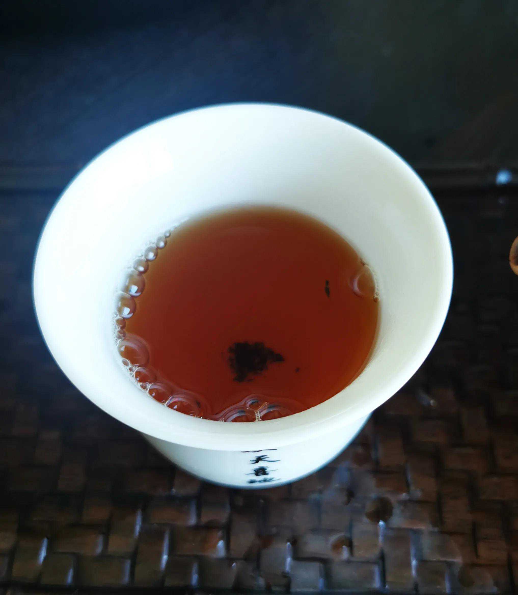 仍旧什么都不想干,晚饭后,泡个脚补充阳气,开始“正念茶觉”,九十年代老六堡+紫芬芽。调息静心听煮水的声音,由小到大,再变小,节奏欢快。注水,候茶,出汤,专注当下,浓郁的香气溢出,不禁贪婪地吸了一口又一口,芬芳刺激多巴胺,疗愈低落的情绪。茶汤浓稠顺滑,物质感丰富,甚至喝出了沉年厚度之感。可想而之茶能量的强大,一杯上衣全湿。饮茶后观呼吸,专注一呼一吸,脑子里只蹦出一次陪孩子的念头,马上被拉了回来,感受到身体不时会或前或后摇晃。正念十分,感觉今日的茶特别香,稠,能量强。照镜子,下午还是黄脸婆,现在脸色红润了。