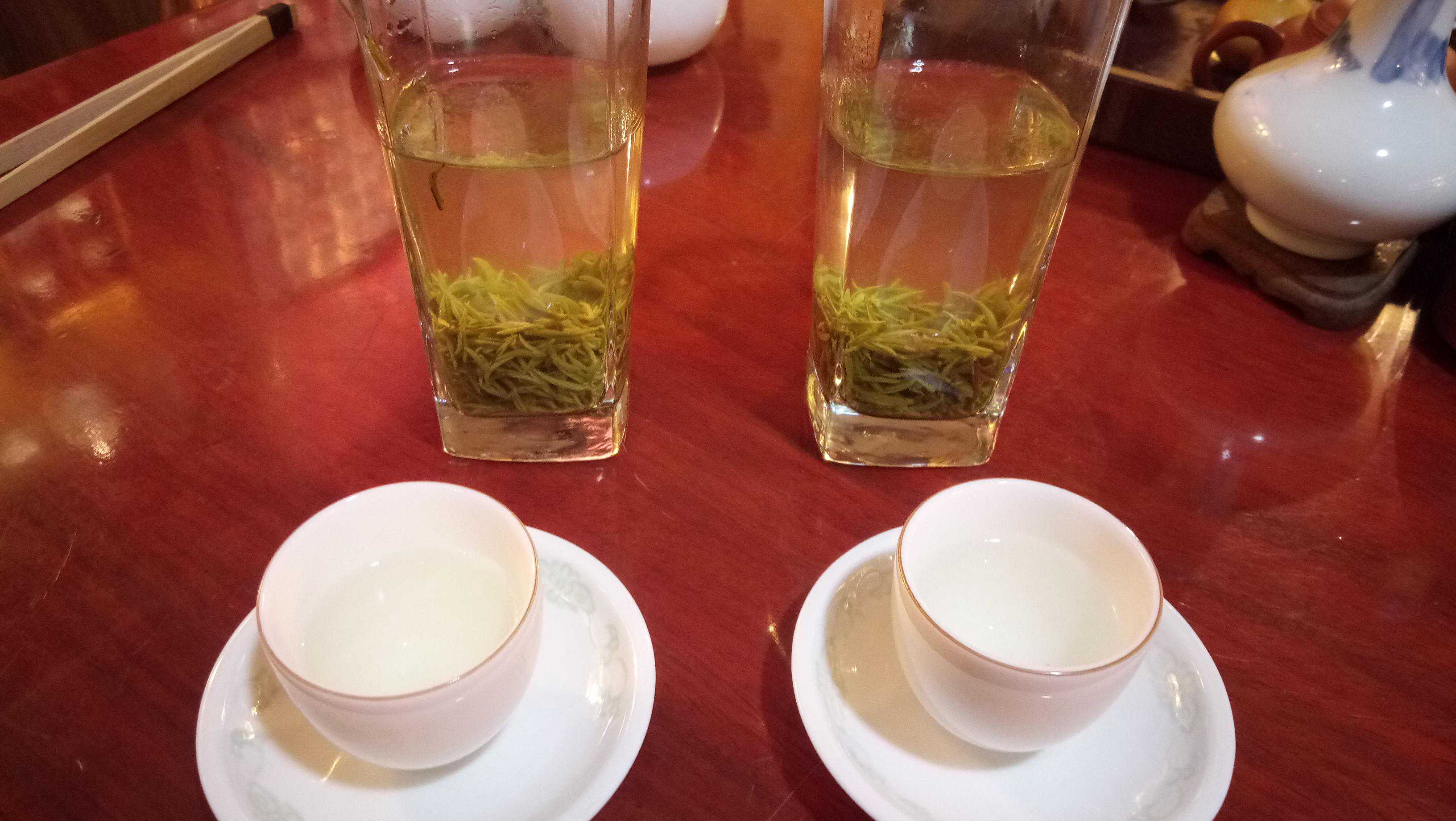 几分钟后,可以品茶了,仔细说说两种茶的区别。