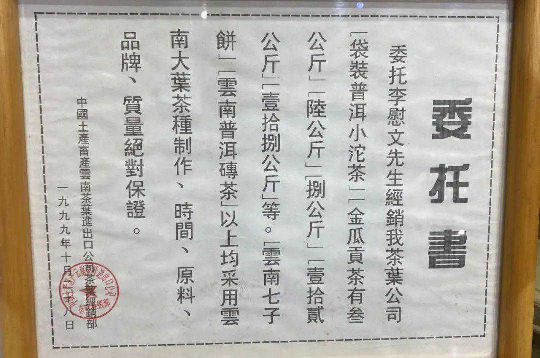 中茶公司委托李尉文经销中茶公司的普洱茶委托书