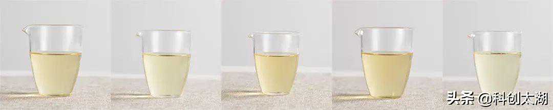 同种茶之间,除了水不同,其它都相同,我们先整体看看泡出来的样子: