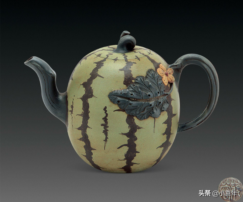 筋囊器俗称“筋囊货”,它是在光素器的基础上加以各式的棱角,将自然界中的瓜瓤、花瓣、云水纹等形体分成若干等分,脉络有致,壶身对称。