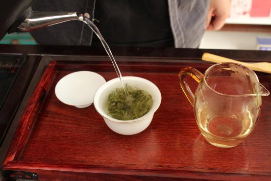茶叶的外形挺秀细长,条索紧结,茶骨重实,白毫显露,色泽墨绿油润,茶香芬芳;经过冲泡后,香气更加浓郁,绵密的板栗香阵阵飘散,汤色碧绿清澈;喝一口,茶汤丝滑,鲜甜可口,不苦不涩,喝下去令人身心放松。