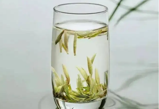 其外观特征挺直似针,外形肥壮,满披白毫,挺直如针,色白似银,赏心悦目,因此命名为白毫银针;将银针置于透明玻璃杯中,冲入沸水,开始时茶芽浮于水面。