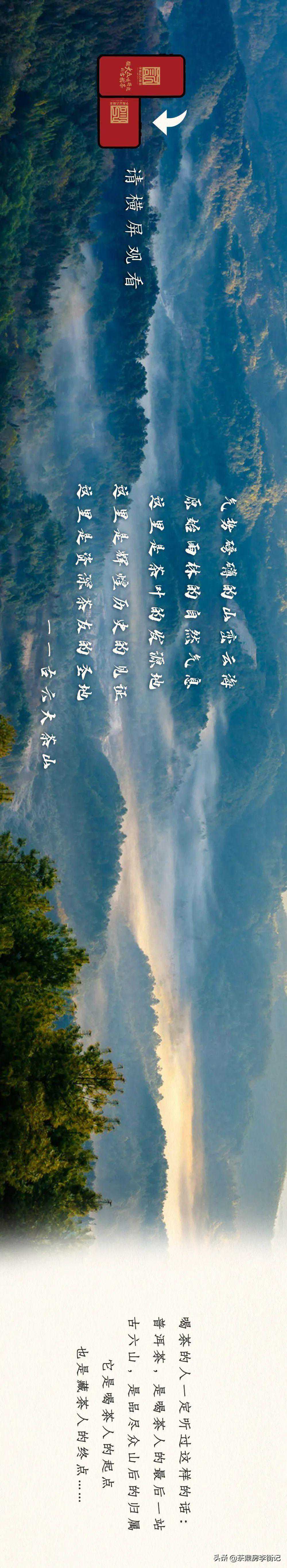 气势磅礴的山峦云海原始雨林的自然气息这里是茶叶的发源地这里是辉煌历史的见证这里是资深茶友的圣地——古六大茶山喝茶的人一定听过这样的话:普洱茶,是喝茶人的最后一站古六山,是品尽众山后的归属它是喝茶人的起......