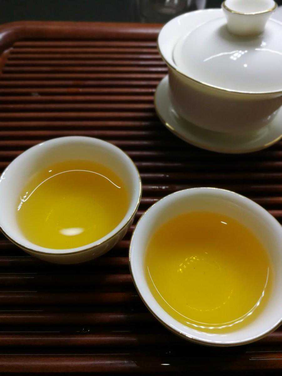 汤色:橙黄明亮清澈剔透;黄中泛绿通透温润。