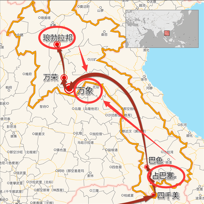 老挝旅游路线图