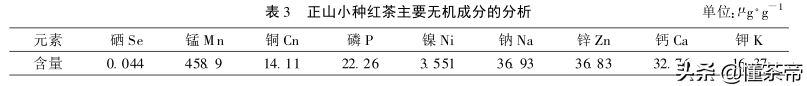 而通过对正山小种红茶无机成分的分析发现,正山小种红茶含有丰富的矿物质元素。
